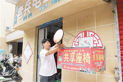 從共享單車(chē)到共享電車(chē),再到現(xiàn)在的共享汽車(chē)。共享已經(jīng)成為當(dāng)今一個(gè)比較熱門(mén)的詞語(yǔ)。近日,在市區(qū)湘江路一小家電維修店門(mén)前,有一處免費(fèi)的“共享座椅”吸引了不少人的注意。
