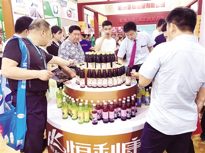 在某品牌的發(fā)酵型飲料展區(qū)前,擠滿了前來咨詢、下單的采購商。參展商告訴記者,酵素飲品是這兩年的市場熱潮,致力于解決更多人的腸道問題,起到減肥、美容、調整體質等作用,很受消費者青睞。在此次食博會上,他們的產品也受到了歡迎。