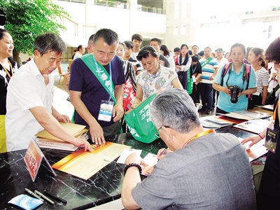 大家排隊(duì)購買郵票,并等待著名郵票設(shè)計(jì)家簽名。
