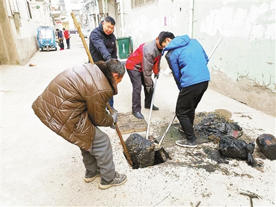 “這個(gè)家屬院是老舊小區(qū),平時(shí)沒(méi)有人管理維護(hù)。家屬院的基礎(chǔ)設(shè)施陳舊,下水道老化淤積了大量污垢,堵塞嚴(yán)重,影響居民生活。臨近春節(jié),居民對(duì)此束手無(wú)策,只能求助社區(qū)。”郾城區(qū)沙北街道昆侖社區(qū)第六網(wǎng)格網(wǎng)格長(zhǎng)王曉云說(shuō),接到居民的反映后,她便到現(xiàn)場(chǎng)勘察,發(fā)現(xiàn)家屬院里12個(gè)沉淀池全部堵塞了。