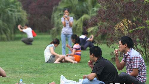 6月8日,在沙澧河風景區(qū),游客將瓜子殼隨意扔在地上。