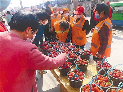(記者 朱 紅 見習(xí)記者 黨夢(mèng)琦)“新鮮的草莓,每位環(huán)衛(wèi)工可以免費(fèi)領(lǐng)一籃。”4月15日,在市區(qū)緯一路愛心粥屋門前,負(fù)責(zé)人高紅熱情地招呼著前來(lái)領(lǐng)取草莓的環(huán)衛(wèi)工。