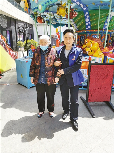 趙廣月工作的時(shí)候,他的媽媽就在廣場內(nèi)散步、曬太陽??匆娤∑娴臇|西,她也喜歡像孩子一樣問東問西。趙廣月只要閑下來,就趕緊尋找母親的身影。