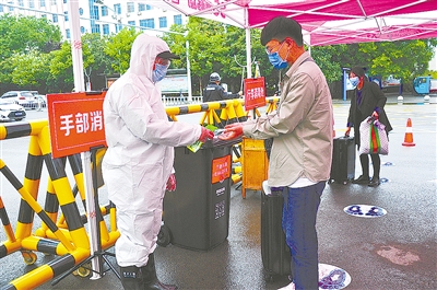 “媽媽再見,放心吧,我會照顧好自己的!”來自許昌的程佳寶同學(xué)到了學(xué)校門口后,和爸媽擁抱惜別,然后進(jìn)入測溫消毒防疫通道,進(jìn)行身份核驗、體溫測量、行李消毒、更換口罩、手部消毒后,進(jìn)入闊別已久的校園。