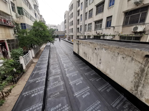 ▲市住建局分包“三無樓院”治理實景。(非機動車庫屋頂防水)