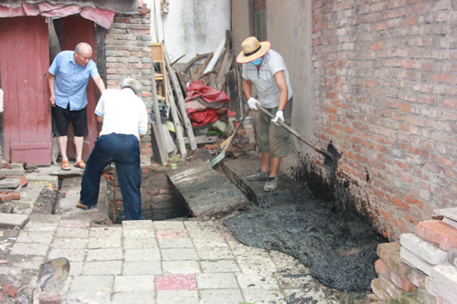 ▲市住建局分包“三無樓院”治理實景。(為樓院清理疏通常年淤堵的化糞池)