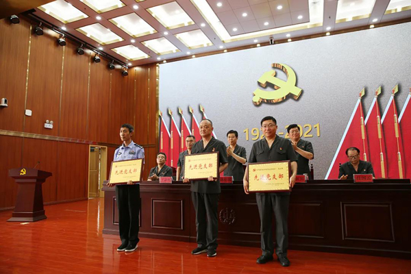 陳松林率領(lǐng)班子成員、全體干警一同齊唱國(guó)歌。大會(huì)表彰了李漢升等16名優(yōu)秀共產(chǎn)黨員,孟哲昱等6名優(yōu)秀黨務(wù)工作者和3個(gè)先進(jìn)黨支部。