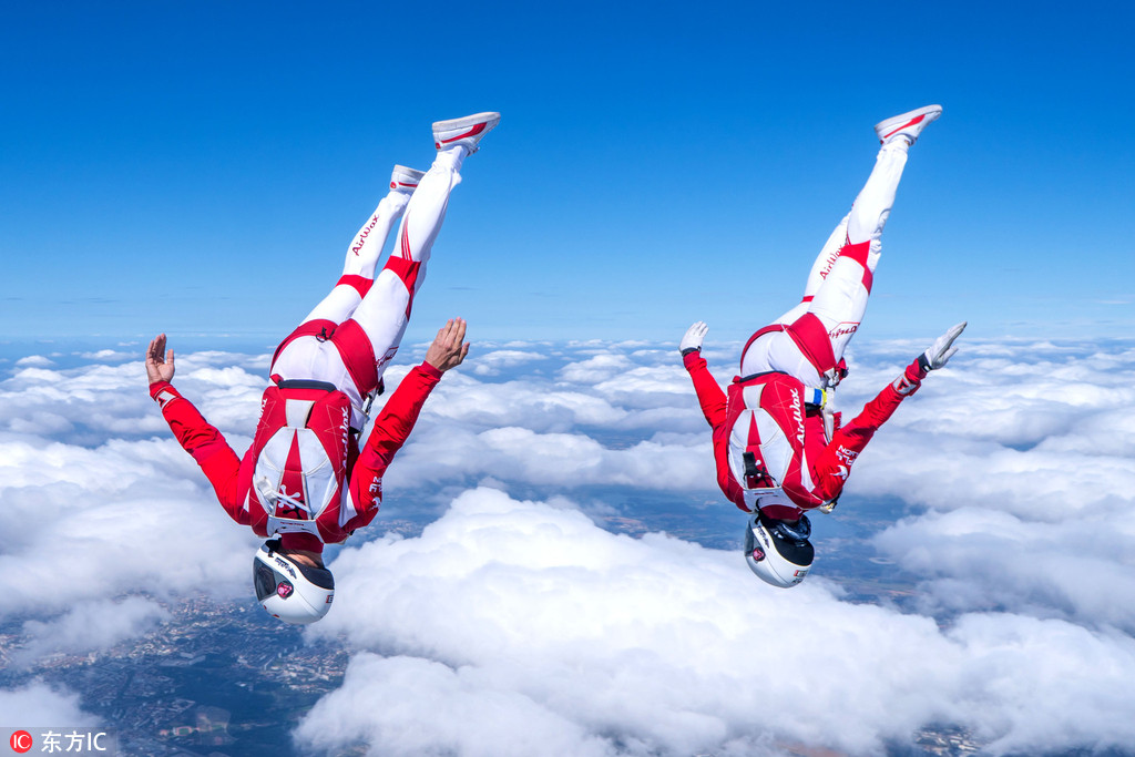 跳傘見多了,但是雙人跳傘,能這么玩的人卻沒幾個(gè),Greg Crozier和Karine Jony就是這少之又少的大牛之二,他們?cè)诜▏?guó)里昂上演了一出驚艷的高空雙人舞。