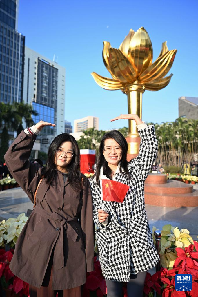 12月20日,澳門特別行政區(qū)政府隆重舉行升旗儀式,慶祝澳門回歸祖國(guó)25周年。這是人們?cè)谟^看升旗儀式后留影。
