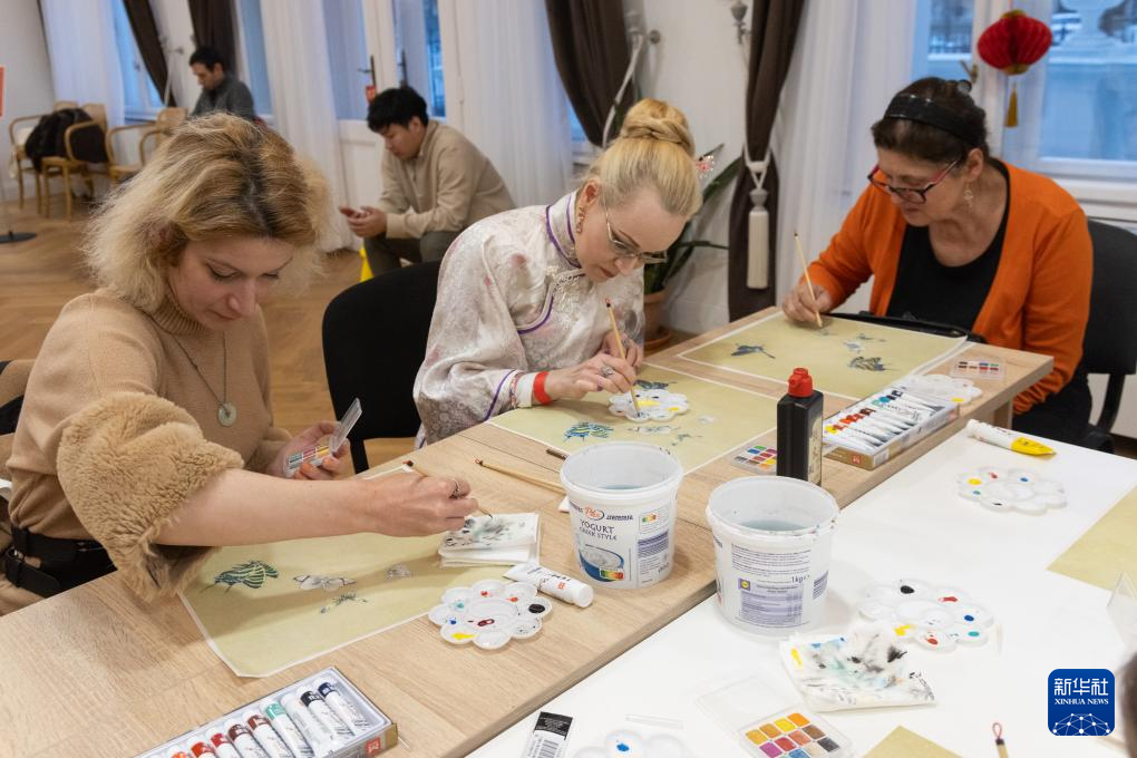 1月17日,在匈牙利布達(dá)佩斯,人們?cè)?ldquo;指尖上的非遺——中國文化體驗(yàn)日”為主題的2025“歡樂春節(jié)”活動(dòng)上體驗(yàn)中國繪畫。