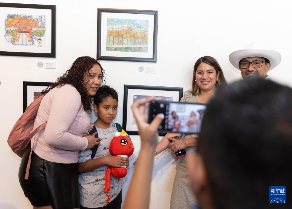1月18日,在墨西哥首都墨西哥城舉行的第十一屆“我想象中的中國”兒童繪畫比賽活動(dòng)上,參賽者和家人手拿蛇年春節(jié)玩偶在畫作前留影。