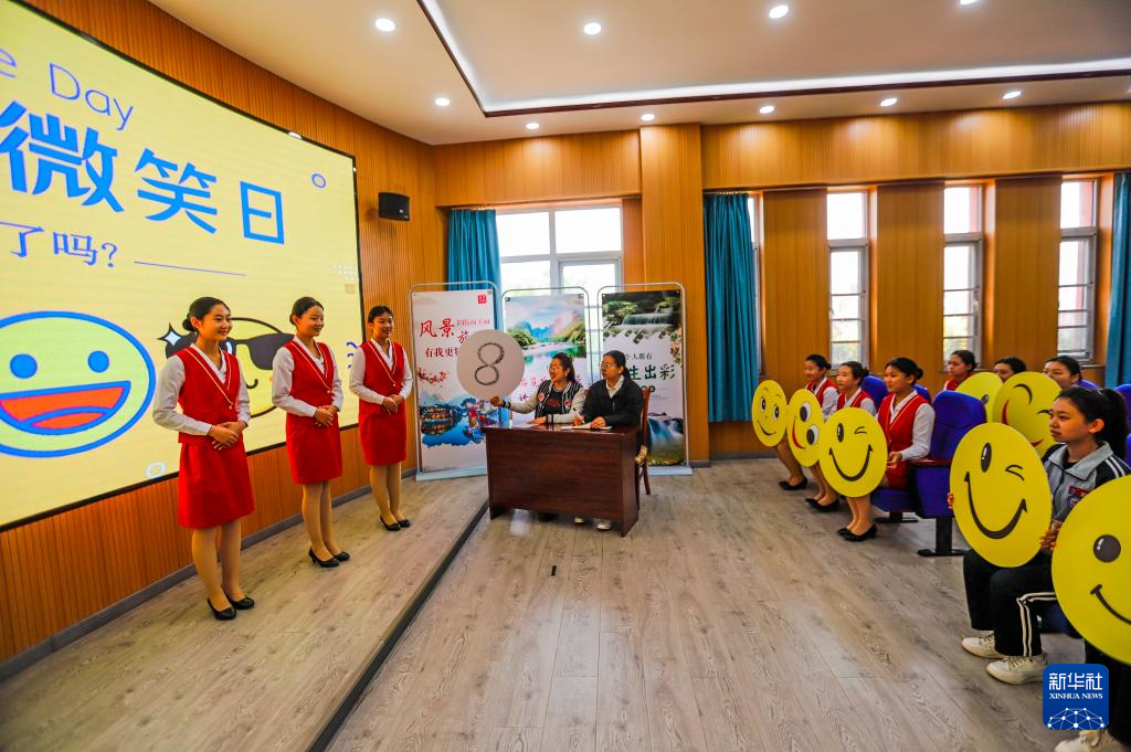 5月7日,河北省遵化市職教中心旅游專(zhuān)業(yè)的學(xué)生在參加微笑禮儀展示活動(dòng)。